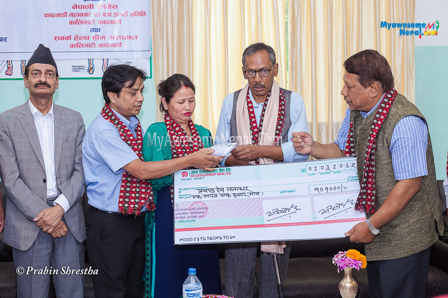 कांग्रेसका पूर्वमहामन्त्री एवम् केन्द्रीय सदस्य प्रकाशमान सिंहको प्रमुख आतिथ्यतामा आयोजित कार्यक्रममा पूर्वसचिव मानन्धरलाई उक्त रकम हस्तान्तरण गरेको थियो । कामपा कांगे्रस १३ वडा इकाई समितिका सल्लाकारसमेत रहेका मानन्धर केही समय अघिदेखि पक्षाघातबाट पीडित थिएँ भने स्थानीय स्पार्क हेल्थ होम अस्पतालमा उपचार गराइरहनु भएको थियो । त्यस्तै कार्यक्रममा सम्बोधन गर्दै प्रमुख अतिथि सिंहले प्रचण्डदेव मानन्धरको शिघ्र स्वास्थ्य लाभको कामना गर्दै स्थानीय तहले आफ्ना सहकर्मीलाई जुन सहयोगी हात बढाउनु आफैंमा उत्कृष्ट कार्य भएको बताउनुभयो ।