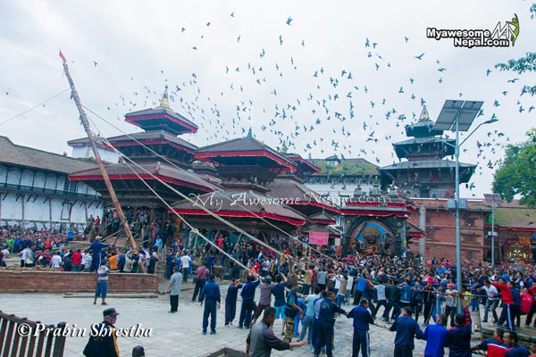 केहि समय पछि लिगोलाई पूर्ण उठाएर(ठड्याएर) इन्द्रजात्र आज देखि शुरु भएको छ| यो जात्रा ८ दिन सम्म चल्ने छ|