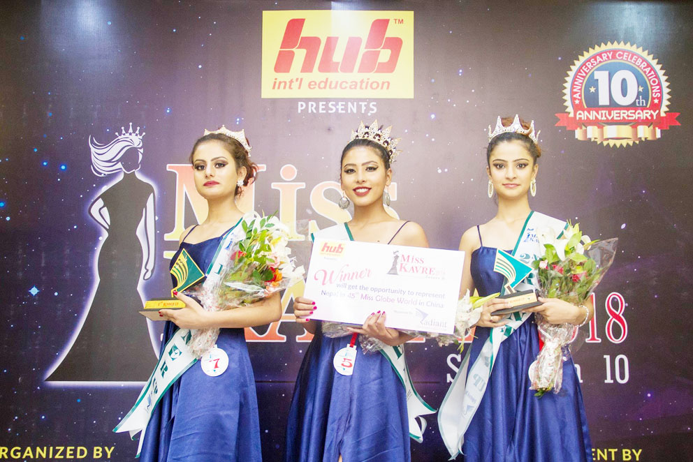 उपाधी विजेतालाई रेडियन्ट ईभेन्ट म्यानेजमेन्टका फाउन्डर डाइरेक्टर राज फैजु र श्रीषा वैदार फैजुले ताज पहिर्याई दिए । विजेता तथा उप विजेताहरुलाई पनि मिस काभ्रे २०१५ का फस्ट रनर अप प्रशंसा मानन्धर, २०१६ का फस्ट रनर अप लजना नकर्मी र २०१७ का सेकेन्ड रनर अप पुनम नापितको साथमा हब इन्टरनेशनल एजुकेसनका सरीता खड्का, उद्धव खड्कालगायतले गिफ्ट ह्याम्पर प्रदान गर्नुभयो ।