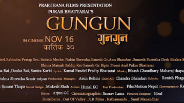 चलचित्र ‘गुनगुन’को पोस्टर सार्वजनिक गरिएको छ । कार्तिक ३० गतेबाट प्रदर्शनमा आउन लागेका चलचित्र ‘गुनगुन’को→