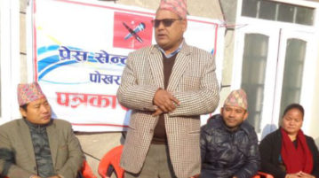 प्रेस सेन्टर कास्कीद्वारा आज यहाँ आयोजित पत्रकार सम्मेलनमा नेकपा माओवादी केन्द्रका नेता एवं पूर्व उपप्रधानमन्त्री→
